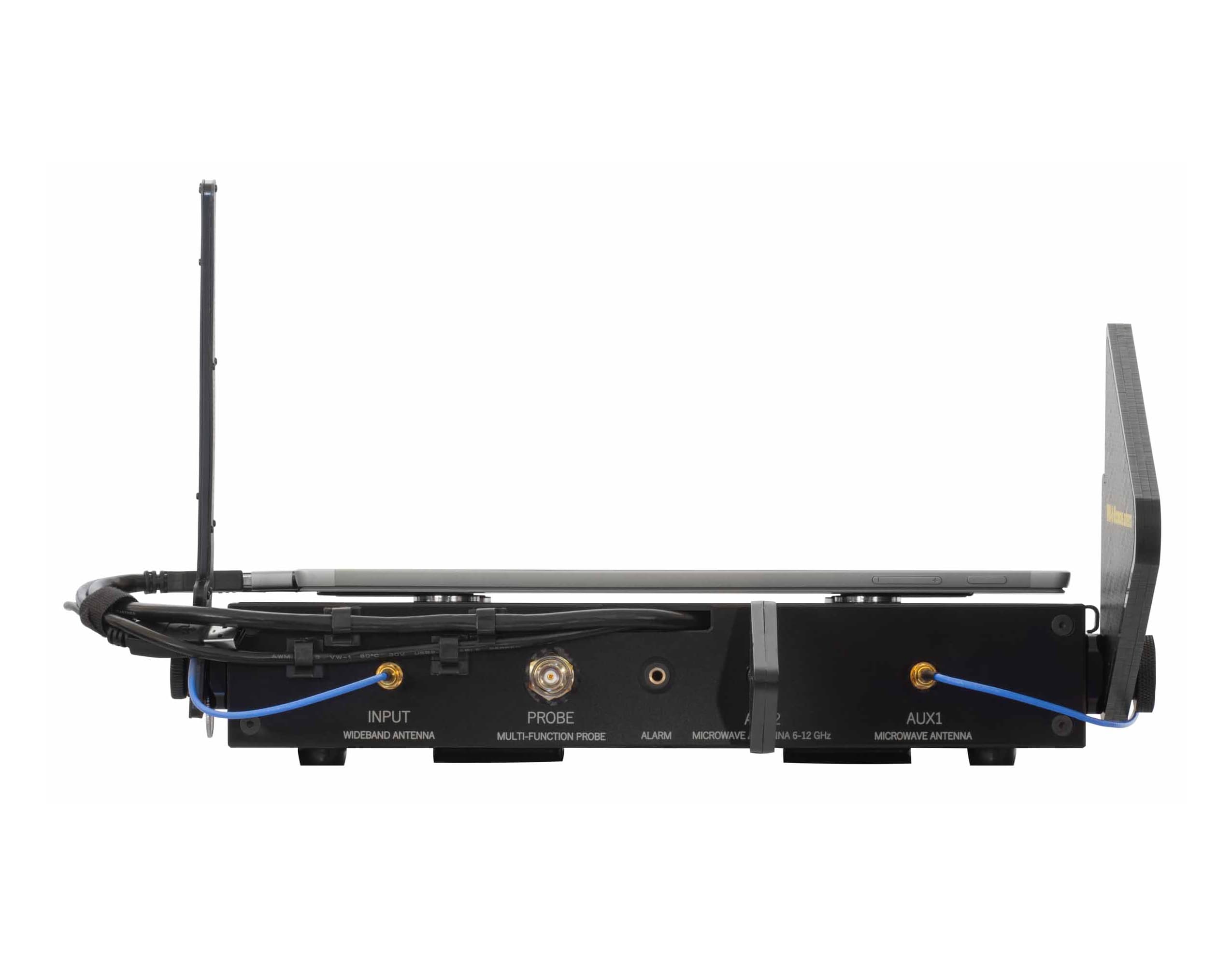 - Швидко і надійно виявляє всі види радіочастотних пристроїв негласного зняття інформа.ції в діапазоні до 6 ГГц або 12 ГГц, включаючи аналогові, цифрові, що працюють постійно й періодично, передають аудіо або відео, з шифруванням або без нього.
