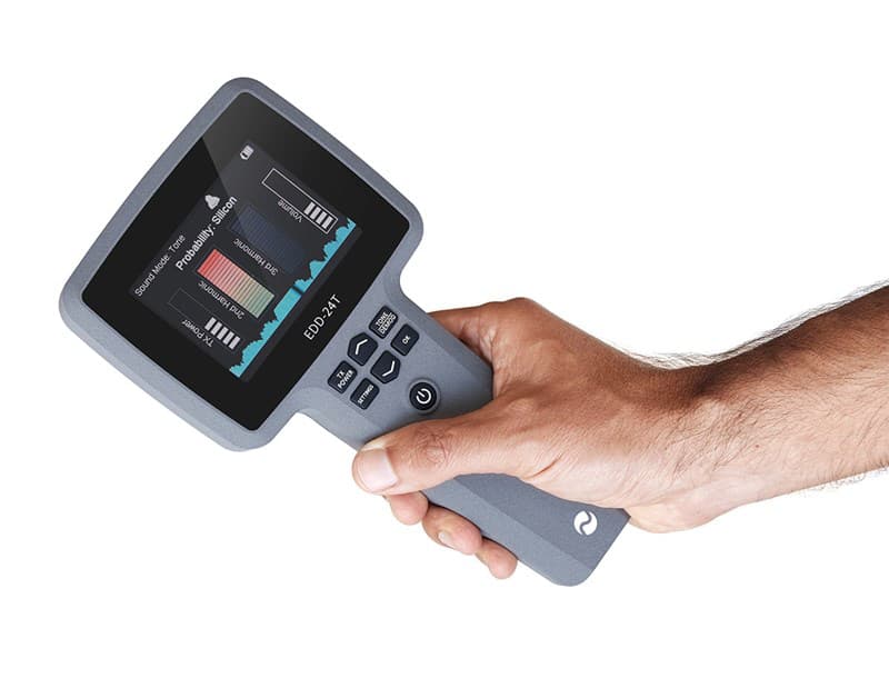 EDD-24T здатний виявляти такі матеріали, як кремній, який зазвичай зустрічається в електронних пристроях, та метали або біметали, завдяки своїм подвійним гармонійним приймачам. Це дозволяє йому ідентифікувати широкий спектр електронних компонентів та пристроїв, забезпечуючи універсальний інструмент для виявлення прихованих електронних предметів. Технологія пристрою спеціально розроблена для розрізнення цих матеріалів для точного виявлення.