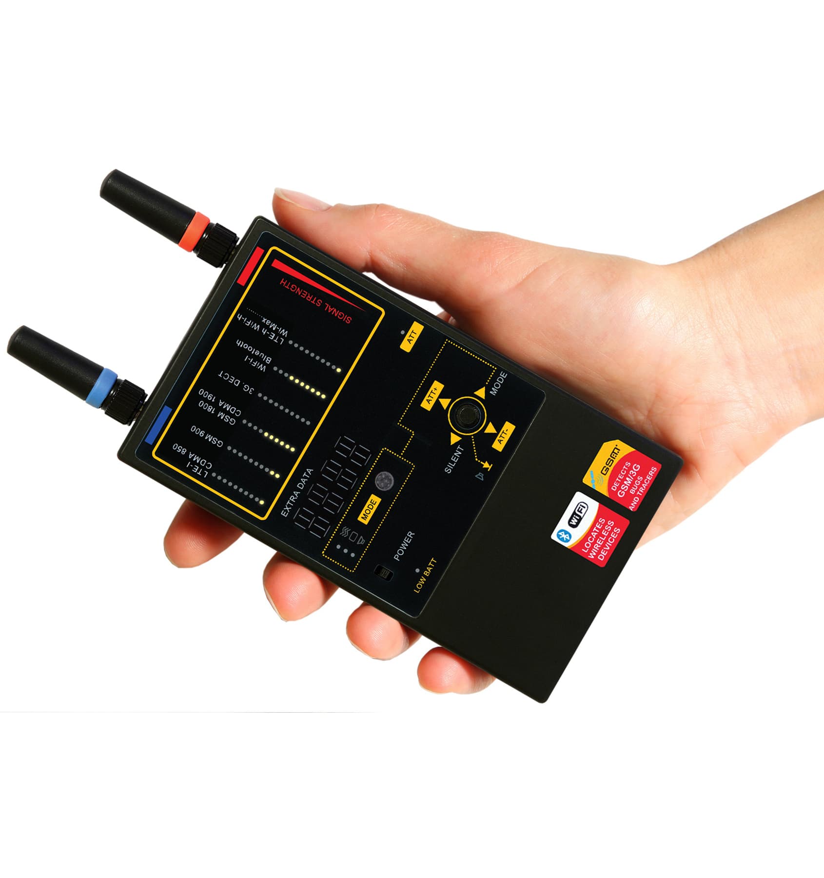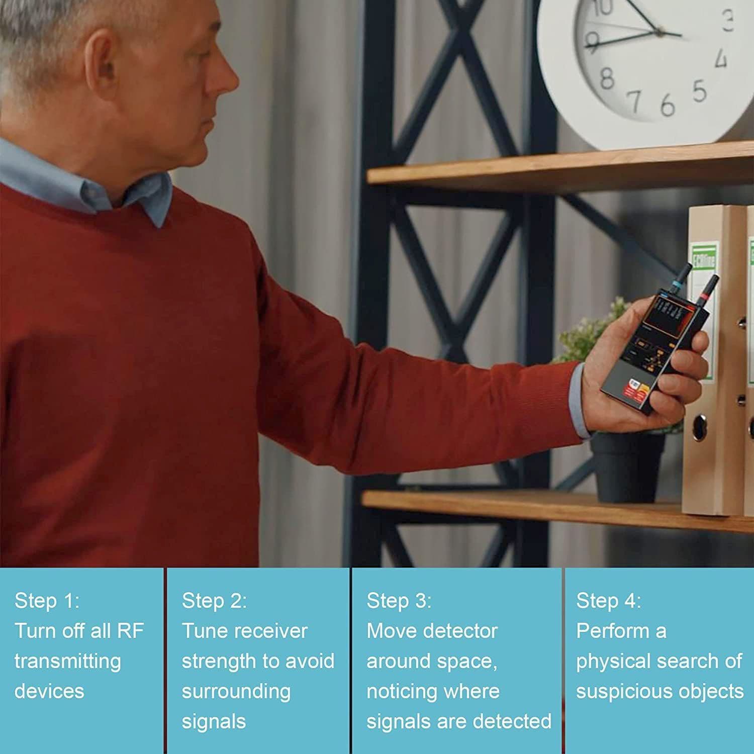 Компактний та повноцінний пристрій, частотний діапазон якого дозволяє виявляти широкий спектр пристроїв для прослуховування. Маючи 6 каналів для різних частотних діапазонів, він може одночасно виявляти 6 різних видів передач на відстані, набагато більшій, ніж будь-який звичайний радіочастотний детектор.