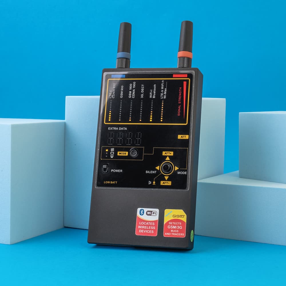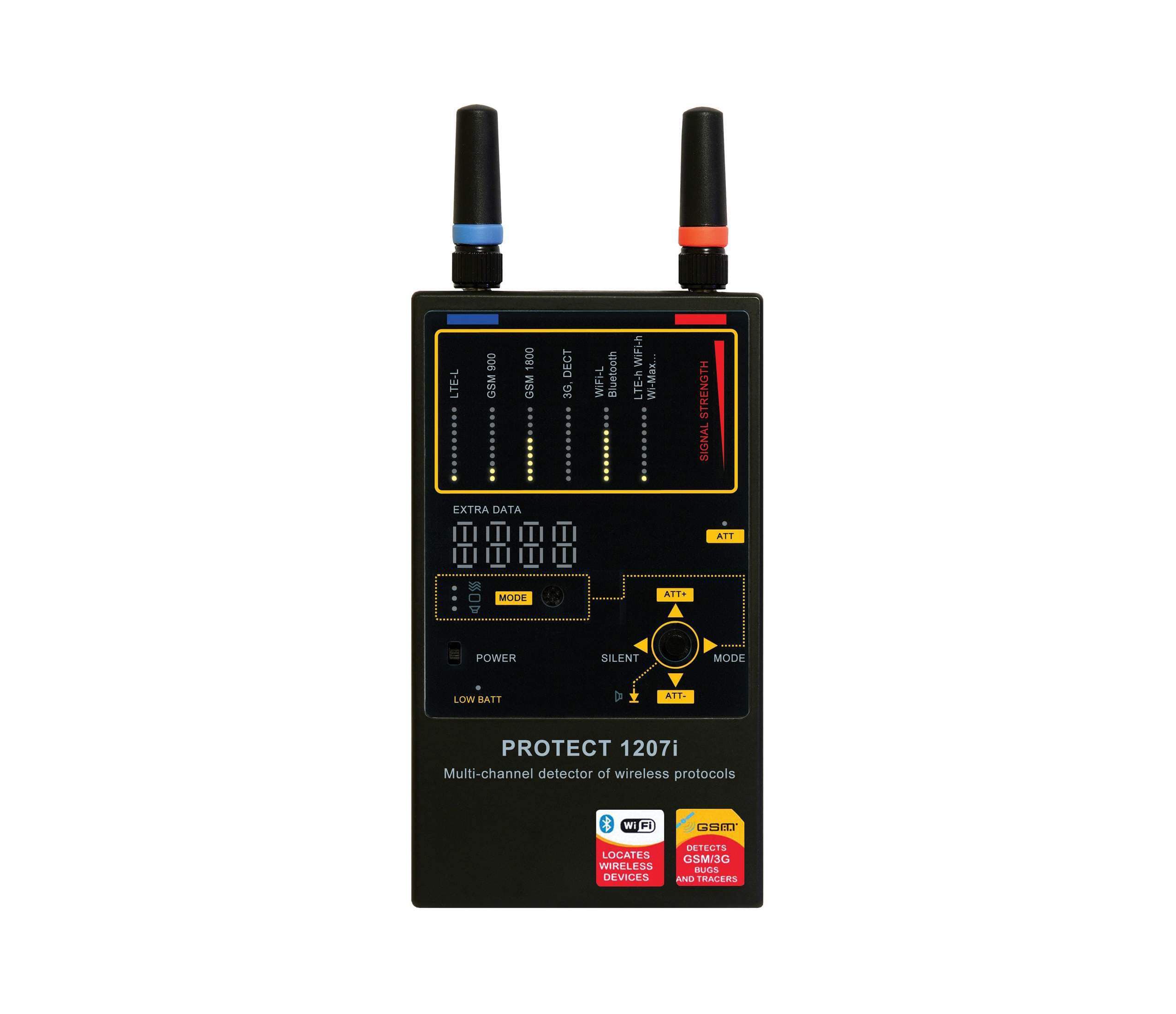 Так, Protect 1207i може виявляти пристрої Wi-Fi та Bluetooth. Він розроблений для ідентифікації низки цифрових передач, включаючи передачі від джерел Wi-Fi та Bluetooth, що робить його універсальним інструментом для виявлення прихованих електронних пристроїв. Чутливість та діапазон частот пристрою дозволяють йому виявляти ці поширені бездротові технології.