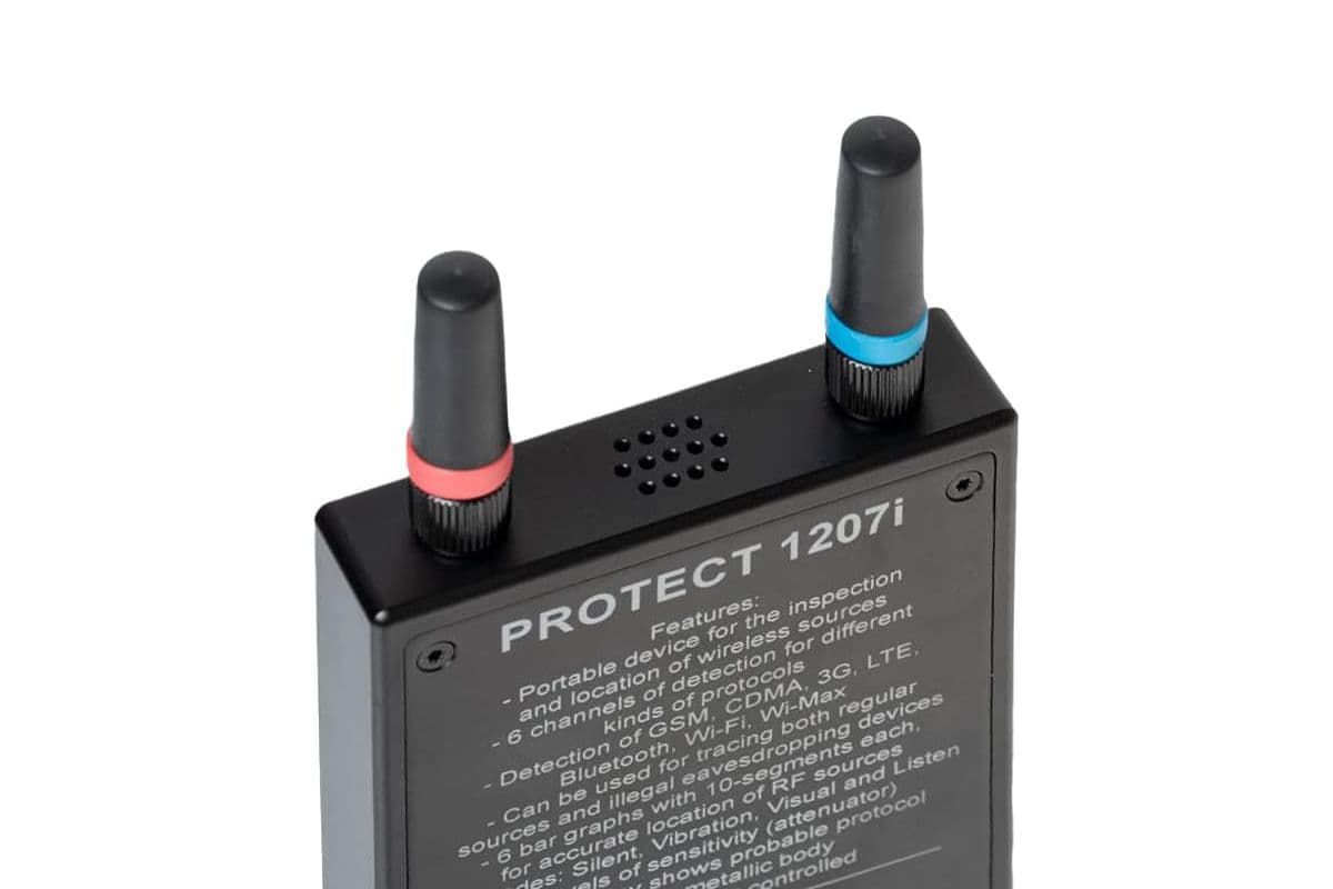 Protect 1207i має діапазон частот від 800 до 7000 МГц. Цей широкий діапазон дозволяє йому виявляти різноманітні жучки, від GSM до Wi-Fi та Bluetooth-передач. Його здатність охоплювати такий широкий спектр робить його дуже ефективним для боротьби зі спостереженням.