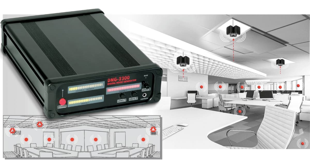 Генератор білого шуму DNG-2300, його перетворювачі та динаміки створюють певним чином звукову завісу навколо простору за допомогою білого шуму, який неможливо відфільтрувати. Таким чином, звук (наприклад, конфіденційна розмова) не може вийти з кімнати, і тому його не можна прослухати стетоскопом або лазерним мікрофоном.