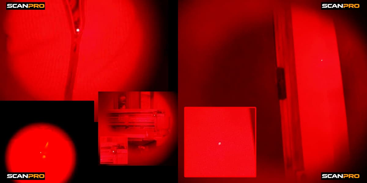Оптичне виявлення ґрунтується на ефекті ретрорефлексія. Об’єктив камери має багатошарову структуру лінз, яка частково повертає світло назад до джерела. При скануванні вузьконаправленим випромінюванням і спостереженні через фільтр формується характерна світлова точка. Метод не залежить від електронної частини пристрою і дозволяє знаходити навіть пасивні системи, але критично залежить від геометрії: кут огляду, розмір апертури та маскування можуть суттєво знижувати ймовірність виявлення.