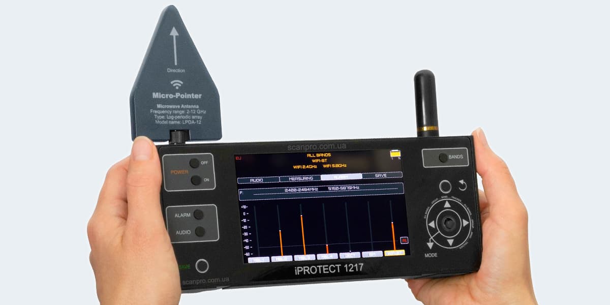 iProtect 1217 дійсно є ефективним інструментом для виявлення сучасних закладних пристроїв, що використовують мобільні або безпровідні канали передачі даних. Основна перевага приладу полягає у селективному принципі роботи: детектор аналізує конкретні частотні діапазони мобільного зв’язку та безпровідних стандартів, що значно підвищує чутливість і дозволяє уникати маскування слабких сигналів сильнішими радіоджерелами. Завдяки цьому iProtect 1217 впевнено виявляє пристрої на базі GSM, 3G, LTE, 5G, а також передавачі Wi-Fi, Bluetooth, DECT та ISM.